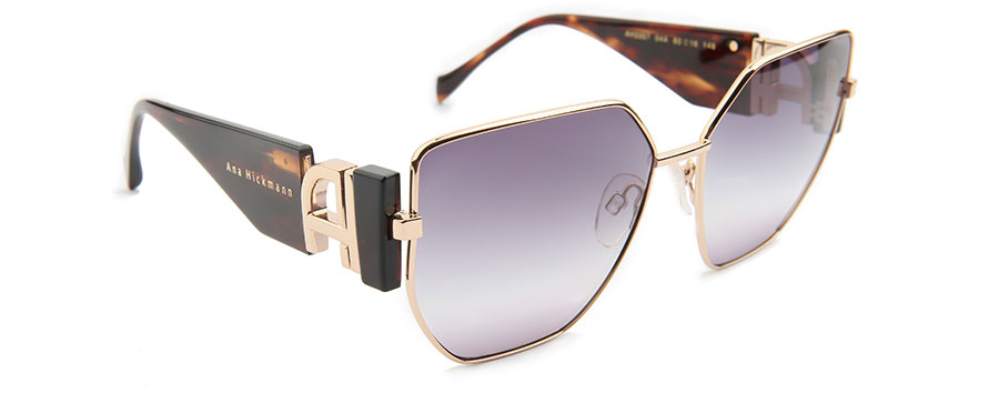Crafted with a lightweight metal front and bold oversized lenses, the AH3357 finds its signature in the sculptural “AH” monogram on the temples — a three-dimensional design detail that seamlessly connects the metallic front to the wide, tapered acetate arms. A distinctive expression of strength, sophistication, and contemporary luxury.