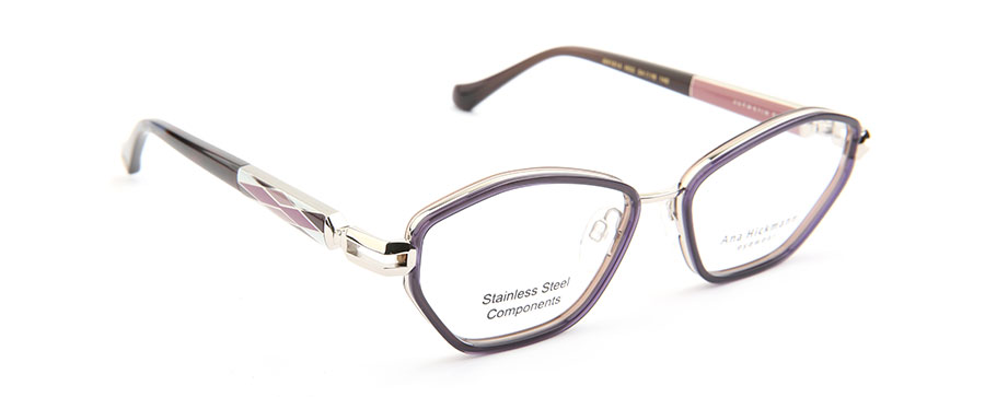 The AH1614 offers a refined interpretation of modern eyewear, blending a sophisticated geometric silhouette with intricate artisanal details. Crafted with high-quality stainless steel components, the frame features a layered front design that provides a bold yet lightweight aesthetic. A defining characteristic of this model is its unique open-link hinge architecture, which leads into temples adorned with a striking diamond-shaped mosaic inlay, offering a rhythmic play on texture and depth.