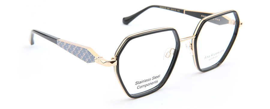 The AH1611G represents a masterclass in geometric sophistication, reimagining the traditional optical frame with a bold, oversized hexagonal silhouette.