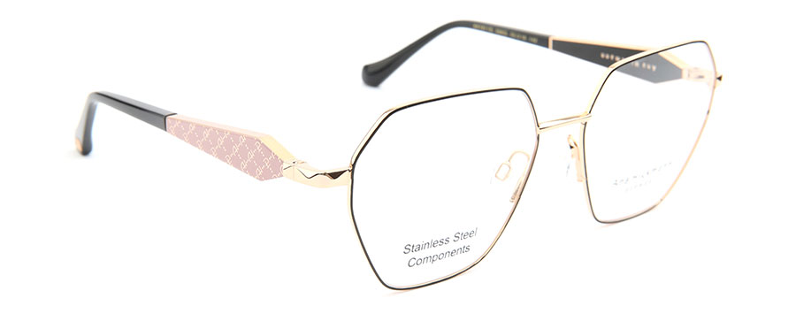 Engineered with high-performance stainless steel components, the structure offers a sleek and lightweight profile that emphasizes architectural clarity and modern proportions. The true hallmark of this design lies in its intricate temple detailing; a signature monogram pattern is seamlessly integrated with multi-faceted, jewelry-inspired hinges that add a layer of sculptural depth. By combining sharp, clean lines with decorative textures, the AH1611G serves as a sophisticated statement piece that bridges the gap between technical precision and avant-garde fashion, making it an essential accessory for a contemporary, elevated look.